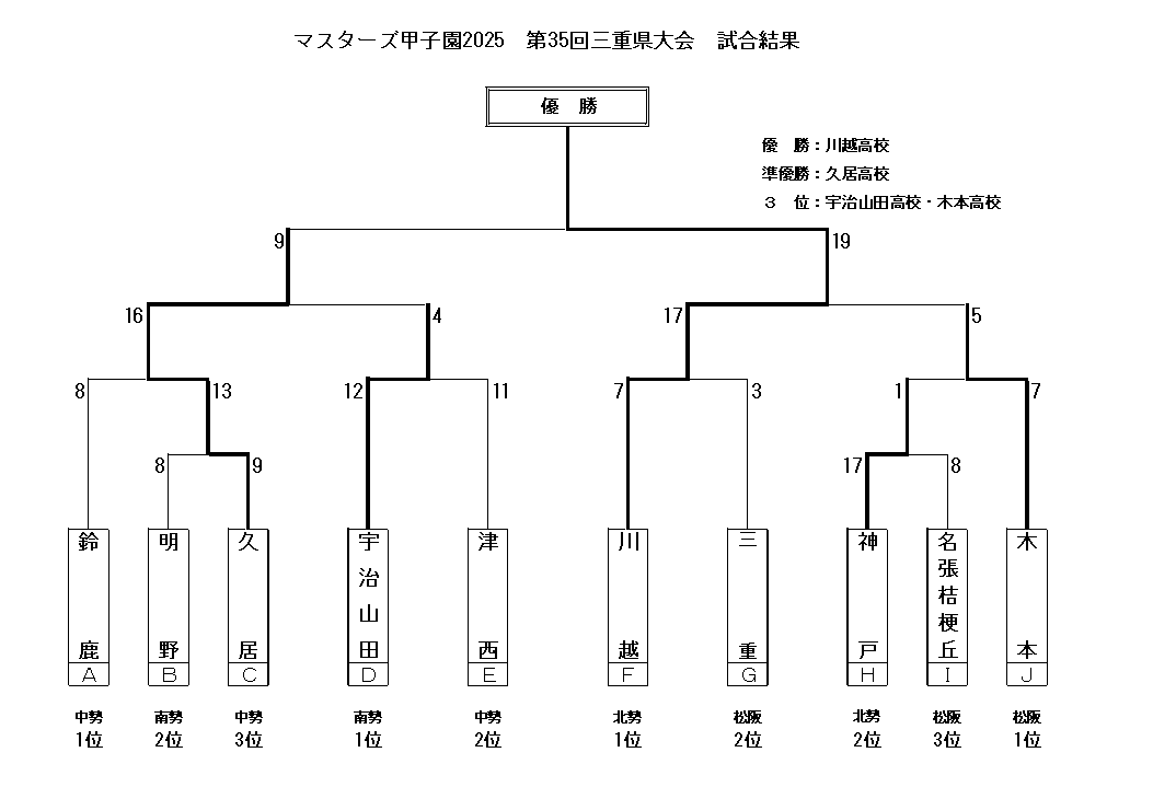 優勝:宇治山田 準優勝:久居 3位:松阪商業、木本